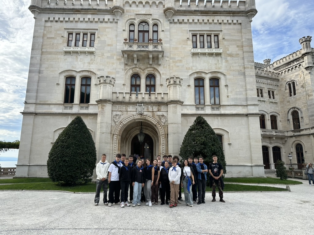 A negyedik napon a programok a történelmi megemlékezések után a lelki feloldódás és élményszerzés jegyében folytatódott a tanulmányút. Fontos célunk, hogy a gyermekek az előző napokban átélt élményeket és a felelősség súlyát feldolgozhassák, ezért Triesztbe látogattunk, amely a Habsburg Monarchia idején kiemelkedő tengeri és kereskedelmi központ volt. A délelőtt folyamán megtekintettük a Miramare kastélyt, Habsburg Miksa főherceg egykori rezidenciáját, amely az Adria partján emelkedve a birodalmi múlt és a tengerhez fűződő kapcsolat különleges szimbóluma. A délutánt városnézéssel és szabad sétával töltöttük Trieszt hangulatos utcáin, ahol a tengerparti város különleges hangulata és történelmi épületei maradandó élményt nyújtottak mindannyiunk számára. A napot közös értékeléssel és vetélkedővel zártuk, amelynek keretében átadtuk a köszönő okleveleket az együttműködő oktatási intézmények és civil szervezetek részére.