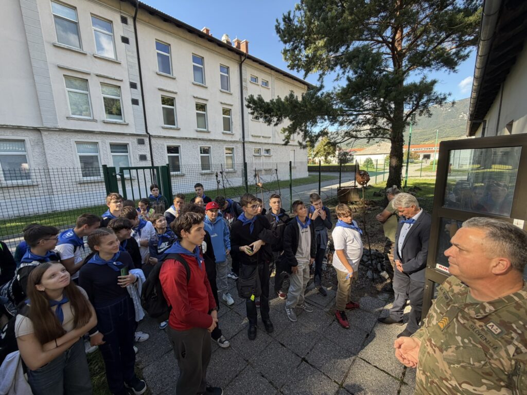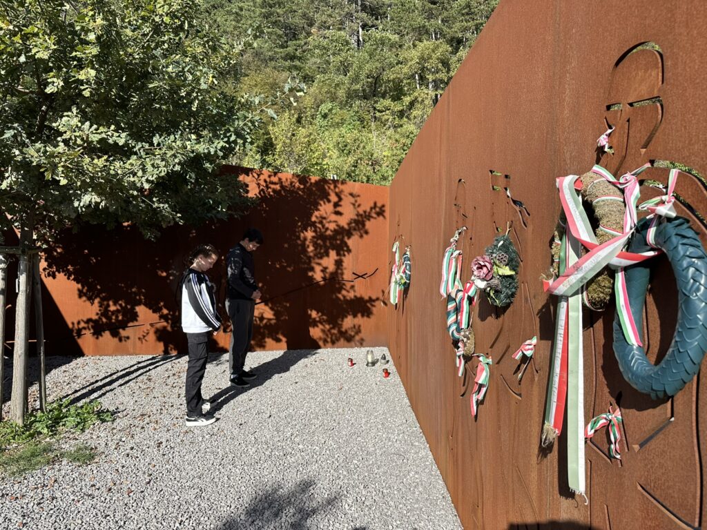 Másnap reggel csoportunk Šempeter pri Gorici felé vette az irányt, ahol a helyi Osnovna Šola Ivana Roba diákjai és pedagógusai nagy szeretettel fogadták a küldöttséget. A szlovén iskola színes kulturális és sportprogramokat szervezett, amelyek során a fiatalok kötetlen formában ismerkedhettek egymással, valamint a helyi hagyományokkal. A közös ebédet követően Vipava városába látogattunk, ahol rövid városi séta után a Háborús Emlékmúzeum gazdag gyűjteményét tekintettük meg. A nap végén közös tiszteletadással emlékeztünk meg az elesett katonákról, majd útnak indulva Rostás Pál huszár közvitéz emlékművénél helyeztük el az emlékezés virágait.