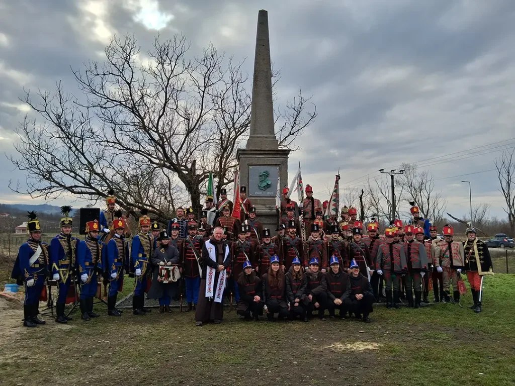 Az ünnepséget követően minden résztvevő Dévára volt hivatalos egy szeretet ebédre. Nagyszerű gulyás és mákos guba elfogyasztása közben is a tapasztaltak voltak a beszélgetés témái. Azt gondoltam, hogy ezt már nem lenne érdemes fokozni, de a fiatalok másként gondolták, és hamar jöttek, kérve, hogy fáradjunk át a templomba. Ott csontig hatoló hideg fogadott, de csakhamar egy fantasztikus műsort mutattak be a csoport tagjai a mi általunk átadott Ifjú Nemzetőr ruhákban! Fiuk-lányok profi színi bemutatón idézték fel 1848 szabadságot hozó tavaszának elemeit majd a második színben a piski csata küzdelmét és Bem katonáinak hősiességét, amivel ismét biztosították a függetlenséget!