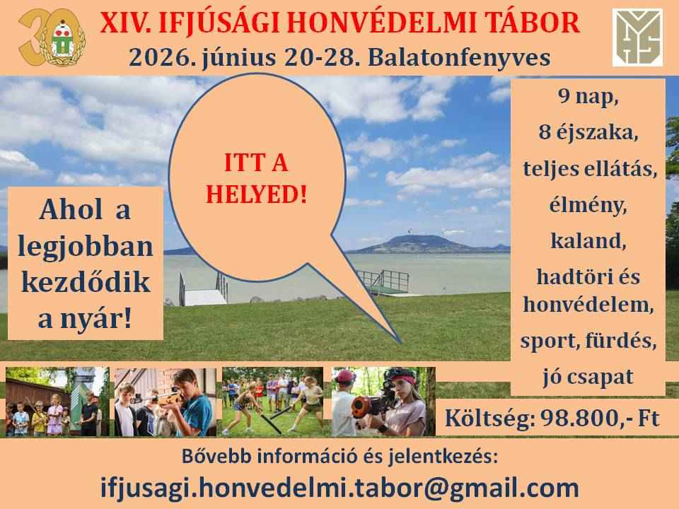 Immár 14. alkalommal rendezzük meg a nyári Balaton-parti honvédelmi táborunkat, mely ezúttal új helyre költözik, ahol ideális feltételek várnak Bennünket. A megnövekedett férőhelyes táborunk programjában ezúttal is Raptor lézerharc játék, lézeres céllövés, számos hadtörténelmi előadás, verseny, vetélkedő, sport, fürdés és játék várja mindazokat, akik egy fegyelmezett, tartalmas és izgalmas honvédelmi